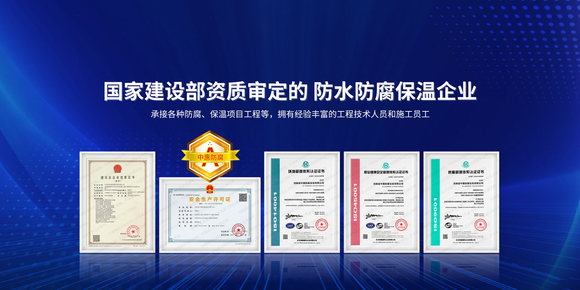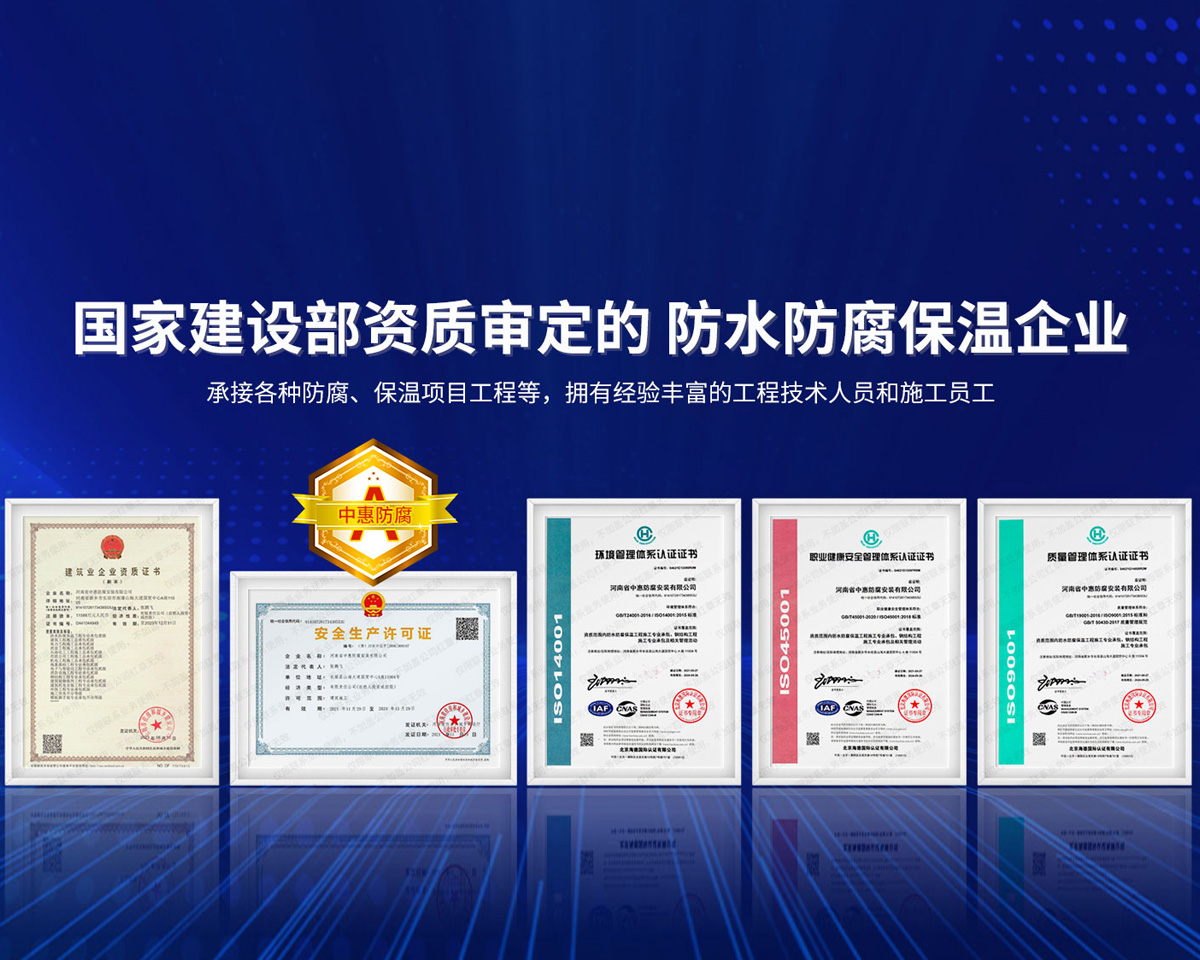 公司經營范圍:防水防腐保溫工程;消防設施工程;建筑裝修裝飾工程;建筑機電安裝工程;電力工程;建筑工程;石油化工工程;工業清洗工程;油罐清洗工程;鋼結構工程;環(huán)保工程;模板腳手架工程;電纜防火封堵、防污閃噴涂、外墻外保溫工程;各類施工勞務作業;設備維修、船舶鉚焊、涂裝;電力工程材料、建材、防水材料、防火材料、防腐保溫材料銷售,并相繼通過了GB/T19001-2008idtISO9001:2008GB/T50430-2007質量管理體系認證證書。GB/T24001-2004idtISO14001:2004環(huán)境管理體系認證證書。GB/T28001-2011idtOHSAS18001:2007職業健康安全管理體系認證證書。公司是中國防腐蝕于防護協會、中國施工企業管理協會、電力協會和中國鋼結構防水協會會員單位。 公司的經營業務涵蓋了石油、化工、電力、冶金、煤炭、船舶、國防、燃氣、水利、環(huán)保、交通運輸、航空及國防軍工和輕紡市政等行業的防腐保溫絕熱設備。鋼結構安裝、防火、防水、金屬噴鍍、聚脲噴繪、陰極保護、防滲透堵漏、玻璃鋼及各種磚版材料襯里、橡膠襯里、煙氣硫和耐酸溶劑腐蝕等工程施工。公司連續(xù)十年榮獲“省市先進施工企業”“安全生產先進單位”“重合同,守信用企業”和“AA***資質企業”的稱號。2000年被命名為市級文明單位,2002年被國家工商行政管理局命名為“重合同,守信用的企業”、被中國工業防腐蝕技術協會命名為“防腐蝕企業,能源節(jié)約及環(huán)境保護領域有豐富的經驗和***的業績。工程一次交驗合格率100%。其中攀枝花鋼鐵公司煉鐵廠四號高爐及熱風爐防腐工程、上海寶鋼公司煤氣柜防腐工程、撫順石油一廠裝置防腐項目、齊魯石化公司稀烴廠高塔防腐工程、吉林化學工業公司煉油廠油罐防腐工程、天津石化熱電廠六號爐頂棚聯絡管保溫工程、大慶油田(太倉)力神泵業工程、中國化學工程第十一建設工程、中原油田勘探局工程、中國石化銷售有限公司華北分部、魯皖輸油管道工程、貴州開磷息烽合成氨工程、陜西黃陵煤化工程、中國石油天然氣西部管道塔里木輸油工程、邯鋼集團邯寶鋼鐵公司煉鐵工程、德州供電工程、吉寶(南通)船廠工程,偃師華潤熱力工程、鄭州熱力總公司。 河南省中惠防腐安裝有限公司愿以豐富的施工經驗,***的技術,***的設備,***的管理,***的服務,竭誠為國內外廣大的用戶提供***滿意、******的工程作品。 我公司愿與國內外同仁一道,團結協作,共同推進防腐蝕行業發(fā)展! 公司地址:河南省長垣縣建設路北段360號 固定電話:0373-8866488 郵編:453400 網址:http://www_zhff_com_cn.bjtrcw.com